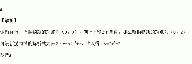 在平面直角坐标系中,将二次函数y=2x2的图象向上平移2个单位,所得函数图象的解析式为