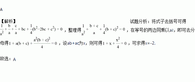 已知实数a、b、c满足.则代数式ab+ac的值是( ).