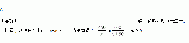 某工厂现在平均每天比原计划多生产50台机器,现在生产600台机器所需的时间与原计划生产450台机器所需时间相同.设原计划每天生产x台机器,则可列方程为( )