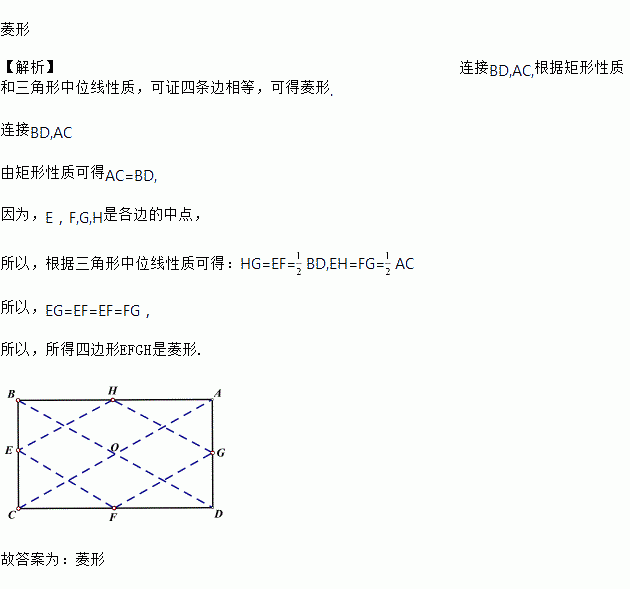 顺次连接矩形ABCD各边中点,所得四边形形状必定是__________.