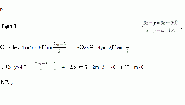 已知关于x的二元一次方程组,若x+y>4,则m的取值范围是( )