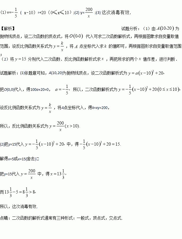 (2)已知空气中消毒液浓度 y 不少于 15 毫克/立方米且持续时间不少于 8 分钟才能有效消毒,通过计算,请你回答这次消毒是否有效?