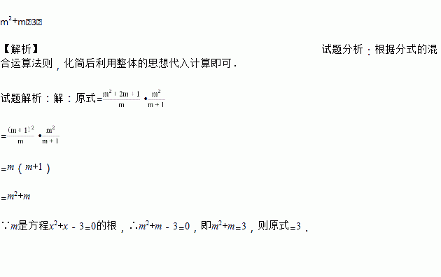 先化简,再求值: ,其中m是方程x2+x﹣3=0的根.