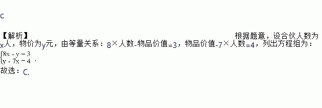 钱,问人数、物价各是多少?设合伙人数为![]()