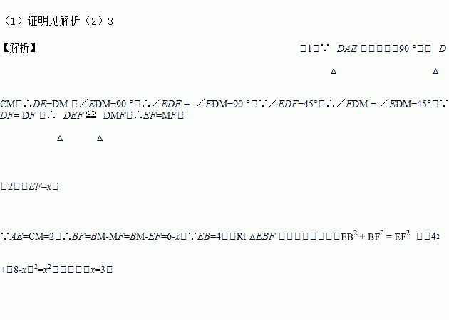正方形ABCD的边长为6,E、F分别是AB、BC边上的点,且∠EDF=45°。将△DAE绕点D逆时针旋转90°,得到△DCM.