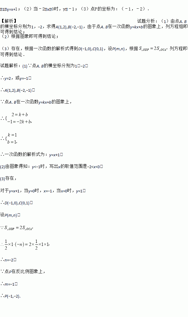 (3)在第三象限的反比例图象上是否存在一个点P,使得S△ODP=2S△OCA?若存在,请求出点P的坐标;若不存在,请说明理由.