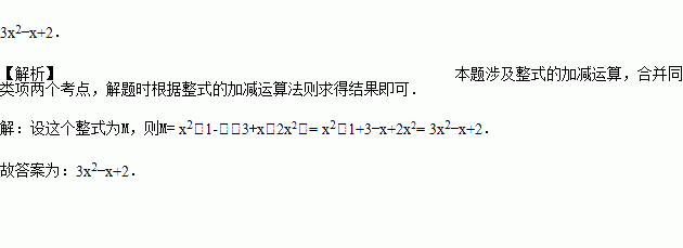 一个多项式加上﹣3+x﹣2x2得到x2﹣1,这个多项式是__.