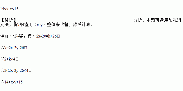 如果方程组的解为x,y,且2<k<4,求x-y的取值范围.