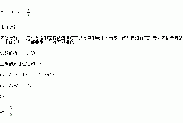 上述解方程的过程中,是否有错误?答: ;如果有错误,则错在 步.如果上述解方程有错误,请你给出正确的解题过程.