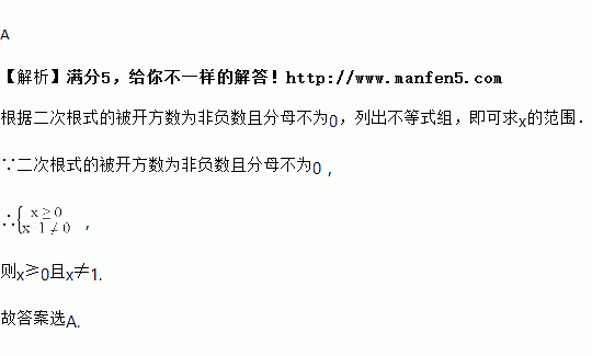 A. x≥0且x≠1 B. x≥0 C. 0≤x≤1 D. x>1