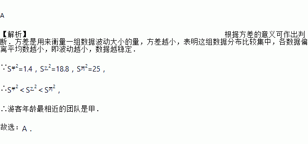 =25,导游小芳喜欢带游客年龄相近的团队,若要在这三个团中选择一个,则她应选( )
