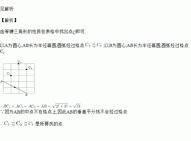 如图A、B是4×5网格中的每个小正方形边长为1,请在图中清晰标出使以A、B、C为顶点的三角形是等腰三角形的所有格点C的位置.