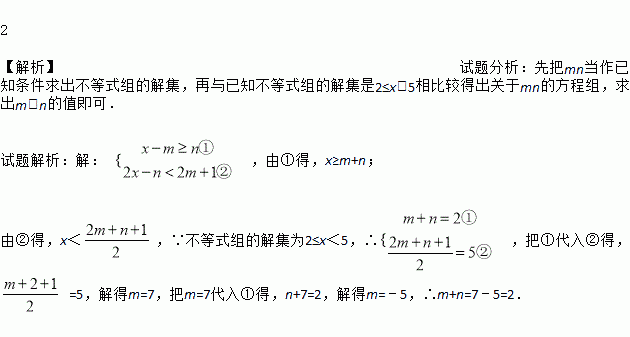 若关于x的不等式组的解集是2≤x<5,求m+n的值.