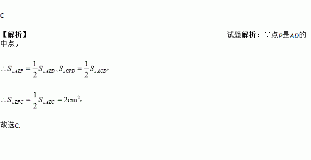 如图,在△ABC中,点D为BC边上一点,连接AD,取AD的中点P,连接BP,CP.若△ABC的面积为4cm2,则△BPC的面积为( )