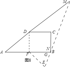 如图8所示,当AN=MN时,显然此时G、N与点B重合,所以,AN=AB=6.
