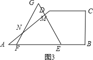 ②如图3所示,当3≤t<4时,AE=t,DE=$\frac{t}{2}$,MG=3-$\frac{t}{2}$;