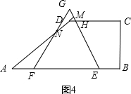 ③如图4所示,当4≤t<5时,GH=1,ME=$\frac{t}{2}$,MG=3-$\frac{t}{2}$,MH=$\frac{t}{2}$-2,MN=$\sqrt{3}$MG,DH=$\sqrt{3}$MN,