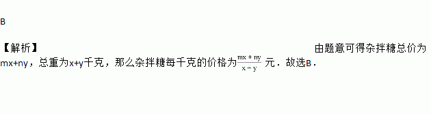 每千克m元的糖果x千克与每千克n元的糖果y千克混合成杂拌糖,则这种杂拌糖每千克的价格为 ( )
