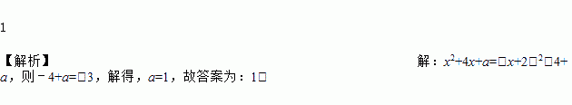 1 【解析】【解析】 x2+4x+a=(x+2)2﹣4+a,则﹣4+a=﹣3,解得,a=1,故答案为:1.