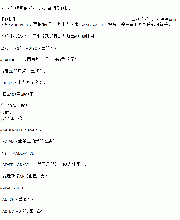 如图,在四边形ABCD中,AD∥BC,E为CD的中点,连接AE、BE,BE⊥AE,延长AE交BC的延长线于点F.