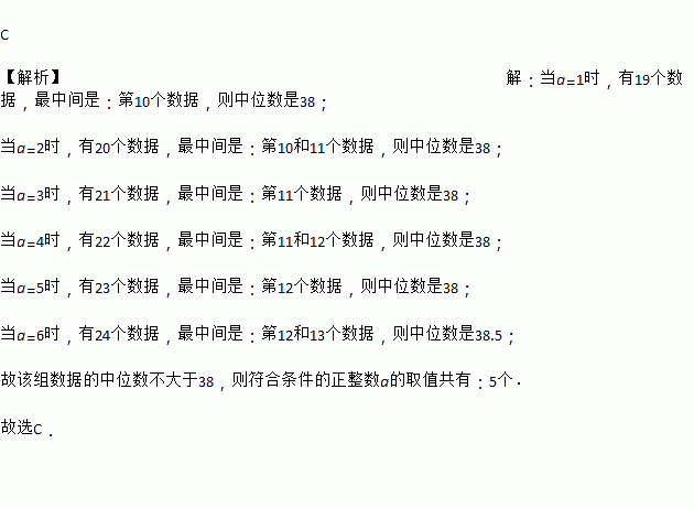 若该组数据的中位数不大于38,则符合条件的正数的取值共有( )