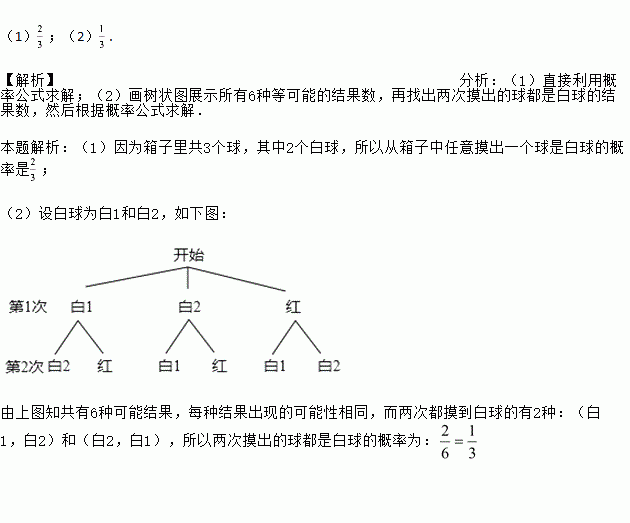(2)从箱子中随机摸出一个球,记录下颜色后不将它放回箱子,搅匀后再摸出一个球,求两次摸出的球都是白球的概率,并画出树状图.