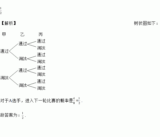 在电视台举办的“超级女生”比赛中,甲乙丙三位评委对选手的综合表现,分别给出“淘汰”或“通过”的结论.比赛规则设定:三位评委中至少有两位评委给出“通过”的结论,那么这位选手才能进入下一轮比赛.试问:对于选手A进入下一轮比赛的概率是_____.