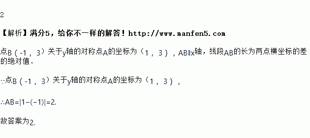 点A与点B(?1,3)关于y轴对称,则线段AB的长为________________.