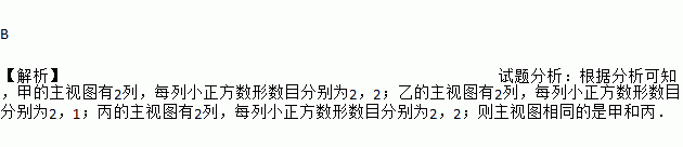 如图,甲、乙、丙图形都是由大小相同的小正方体搭成的几何体的俯视图,小正方形中的数字表示该位置小正方体的个数.其中主视图相同的是( )