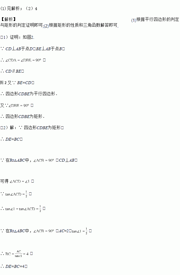 如图,在Rt△ABC中,,CD⊥AB于点D,BE⊥AB于点B,BE=CD,连接CE,DE.![]()