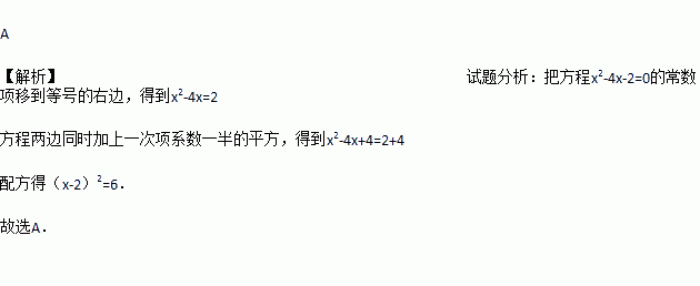 用配方法解方程x-4x-2=0,变形后为( )