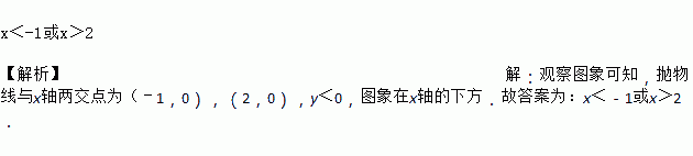 如图,抛物线与x轴的两个交点分别为A(-1,0)、B(2,0),当y<0时,x的取值范围是_______________.