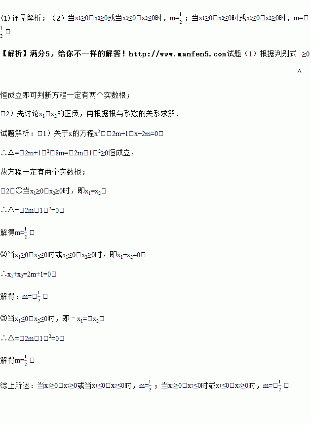 已知:关于x的方程x2﹣(2m+1)x+2m=0