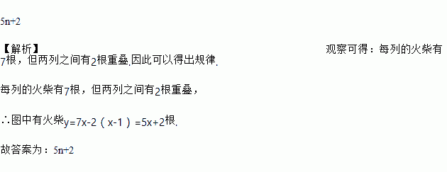 由若干根火柴恰好可拼成如图所示的n列正方形(每列2个),若图中的火柴总根数为y 根,则y=__________.(用含n的代数式表示)
