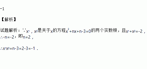 已知x1,x2是关于x的方程x2+nx+n﹣3=0的两个实数根,且x1+x2=﹣2,则x1x2=_____.
