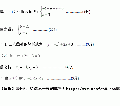 已知二次函数的图象如图6所示,它与轴的一个交点坐标为,与轴的交点坐标为(0,3).