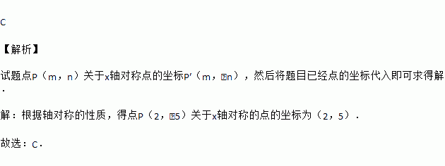 和点 P(2,﹣5)关于 x 轴对称的点是( )