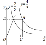 .分析:延长BA交y轴于D,则四边形OCBD为矩形.根据反比例函数系数k的几何意义,得出S△OAD=1,S矩形OCBD=4,则四边形ABCO的面积=S矩形OCBD-S△OAD=3.