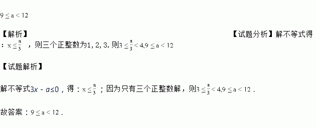 若不等式3x-a≤0只有三个正整数解,求a的取值范围.