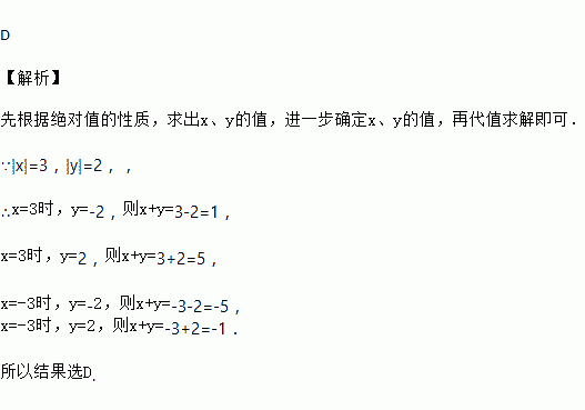若|x|=2,|y|=3,则x+y的值是( )