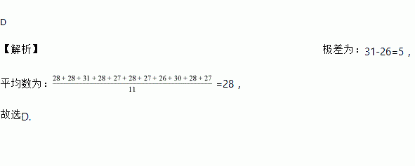 A. 31 ℃,28 ℃ B. 26 ℃,28 ℃ C. 5 ℃,27 ℃ D. 5 ℃,28 ℃
