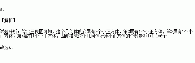 如图,是由若干个大小相同的正方体搭成的几何体的三视图,该几何体所用的正方体的个数是( )