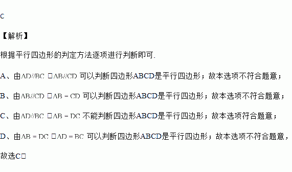下列选项中,不能判定四边形ABCD是平行四边形的是