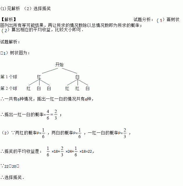 (1)请你用列表法(或画树状图法)求一次连续摇出一红一白两球的概率.