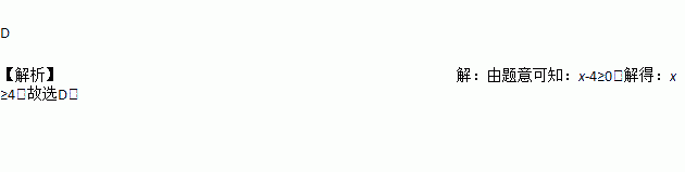A. x≥0 B. x≤4 C. x>4 D. x≥4