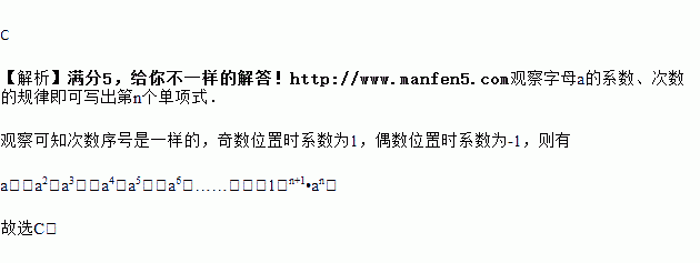 按一定规律排列的单项式:a,﹣a2,a3,﹣a4,a5,﹣a6,……,第n个单项式是( )