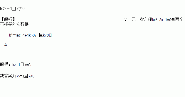 若关于x的一元二次方程kx2-2x-1=0有两个不相等的实数根,则实数k的取值范围是_____