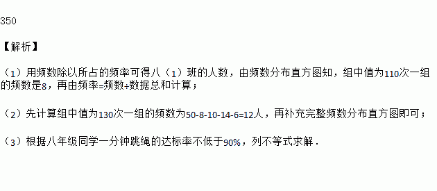 £¨3£©Èç¹ûÒ»·ÖÖÓÌøÉþ´ÎÊý²»µÍÓÚ120´ÎµÄͬѧÊÓΪ´ï±ê£¬°ËÄ꼶ͬѧһ·ÖÖÓÌøÉþµÄ´ï±êÂʲ»µÍÓÚ90£¥£¬ÄÇô°ËÄ꼶ͬѧÖÁÉÙÓжàÉÙÈË£¿Çëд³ö½â´ð¹ý³Ì¡£
