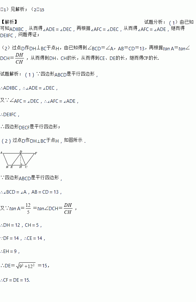如图,已知?ABCD,点E是BC边上的一点,将边AD延长至点F,使∠AFC=∠DEC.