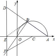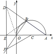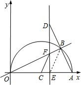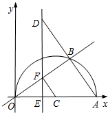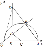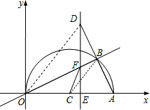 如图,在平面直角坐标系中,点A(10,0),以OA为直径在第一象限内作半圆C,点B是该半圆周上一动点,连接OB、AB,并延长AB至点D,使DB=AB,过点D作x轴垂线,分别交x轴、直线OB于点E、F,点E为垂足,连接CF.